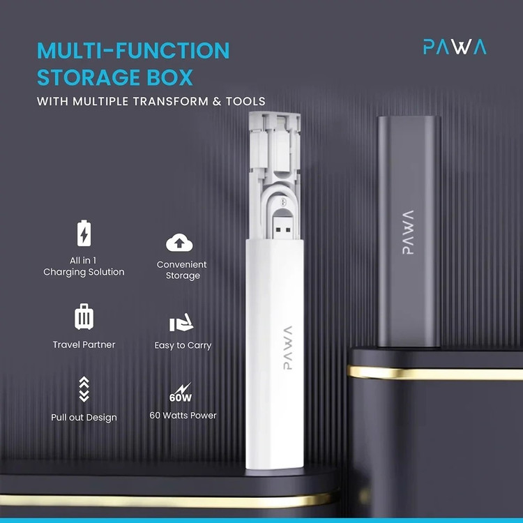 جعبه کابل و مبدل چندمنظوره پاوا Multi-Function؛ مناسب شارژ همه دستگاهها، مدل Multi-Function Storage Box یک جعبه چندمنظوره و فوقالعاده کاربردی برای افرادی است که همیشه با کمبود کابل و مبدل مناسب مواجهاند. این استوریج جمعوجور شامل کابل Type-C و چندین مبدل کاربردی است تا بتوانید در هر شرایطی انواع گوشیهای اندروید، آیفون، تبلت و گجتهای مختلف را شارژ یا حتی انتقال دیتا کنید.
