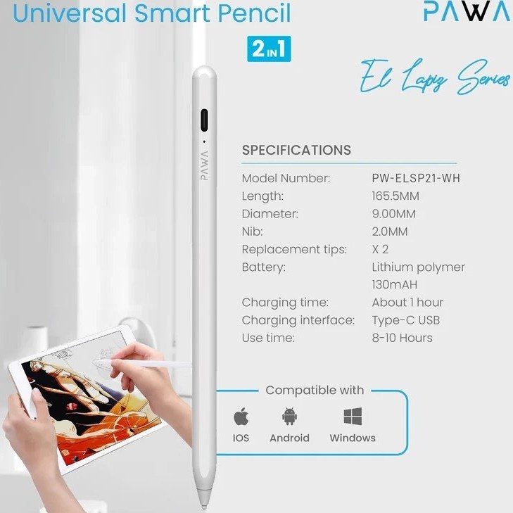 قلم لمسی Universal پاوا مدل EL-Lapiz یک ابزار حرفهای و همهکاره برای کار با دستگاههای لمسی است که نوشتن، طراحی و یادداشتبرداری را به تجربهای دقیق و روان تبدیل میکند. این قلم با طراحی ارگونومیک و وزن مناسب، برای استفاده طولانیمدت ایدهآل است و با باتری قدرتمند داخلی تا ۸-۱۰ ساعت کار مداوم را پشتیبانی میکند.