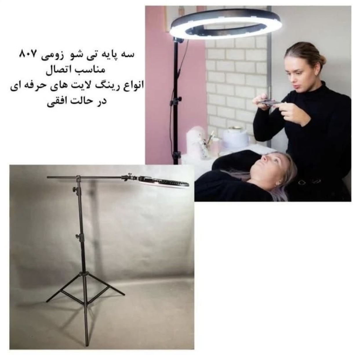- ✅ میله افقی T شکل ۵۰ سانتیمتری برای عکاسی از بالا و نورپردازی تخت