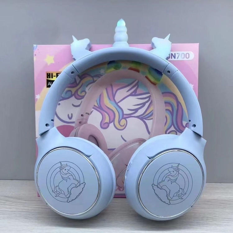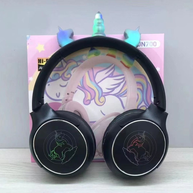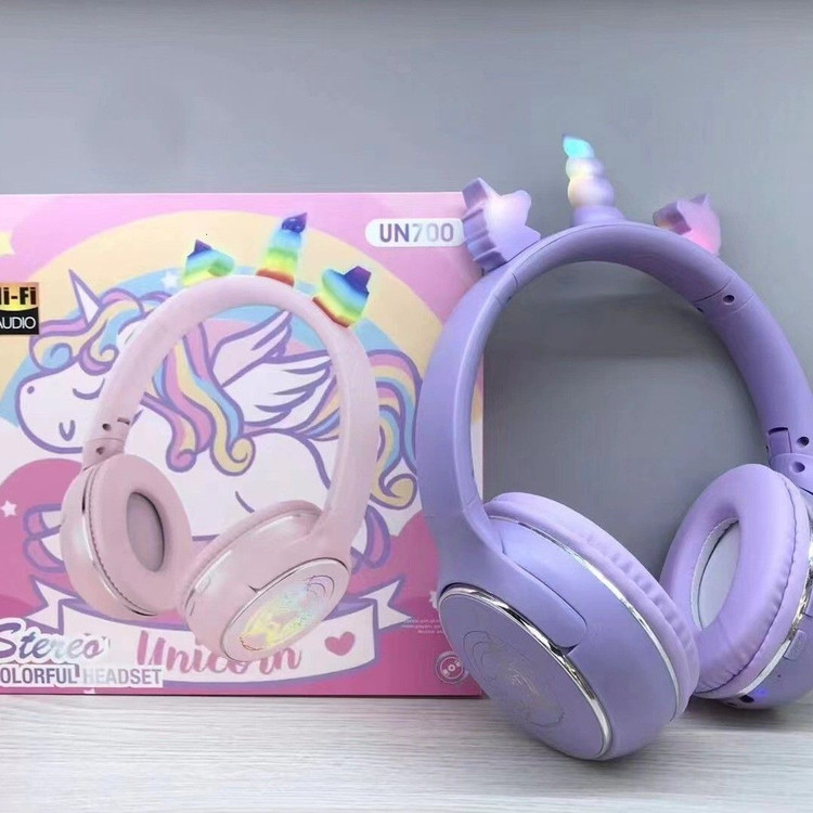 هدفون بلوتوثی تک شاخ دخترانه مدل UN700 طرح یونیکورن با نور LED